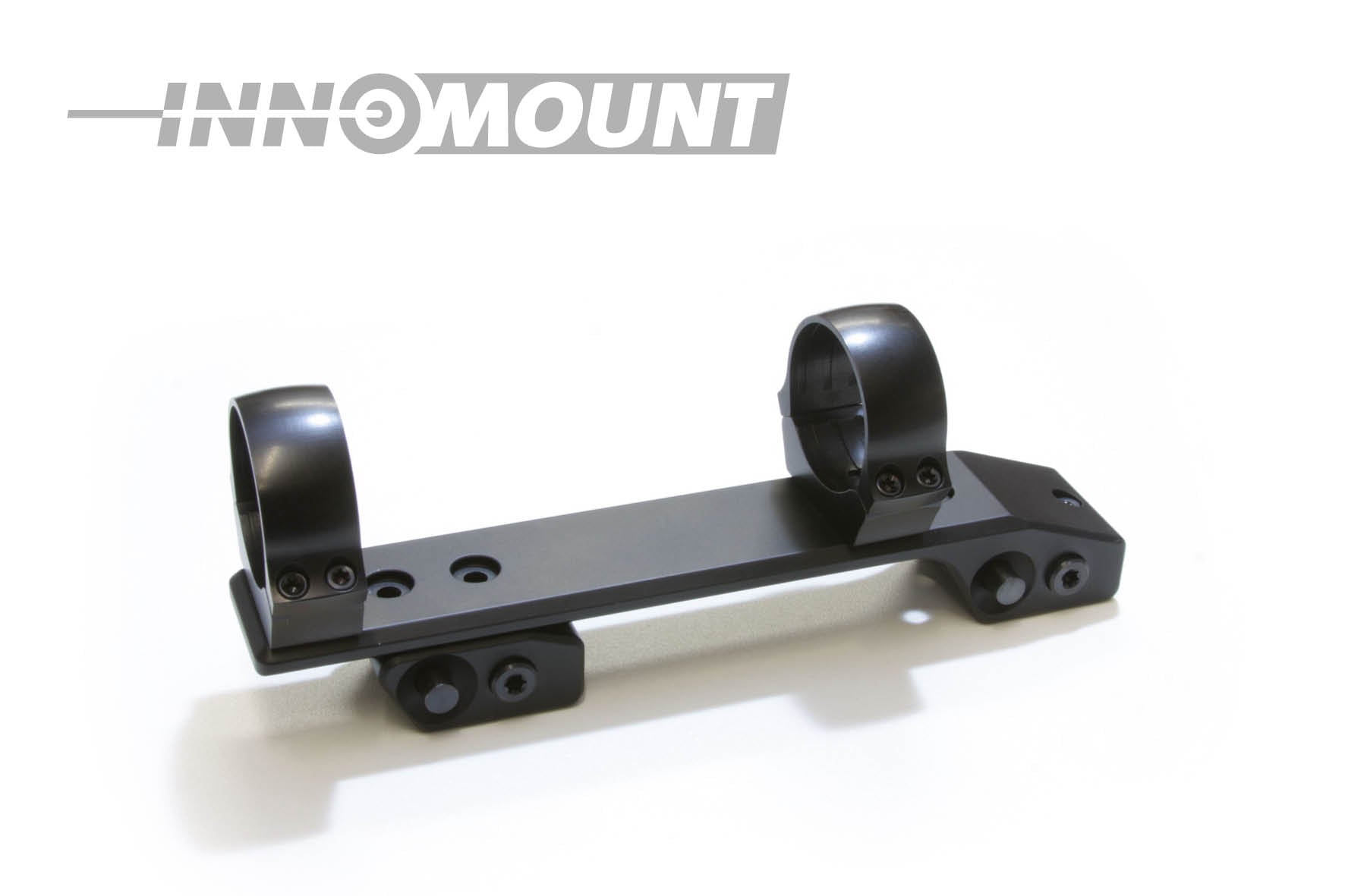 Sopii hyvin kivääreihin, joissa ei ole yhtenäistä pitkää picatinny -kiskoa, vaan 2 erillillistä picatinny-palaa. Tämän innomount jalan taka osa liikkuu portaattomasti ja se saadaan säädettyä n. 65-130mm etäisyyksille.