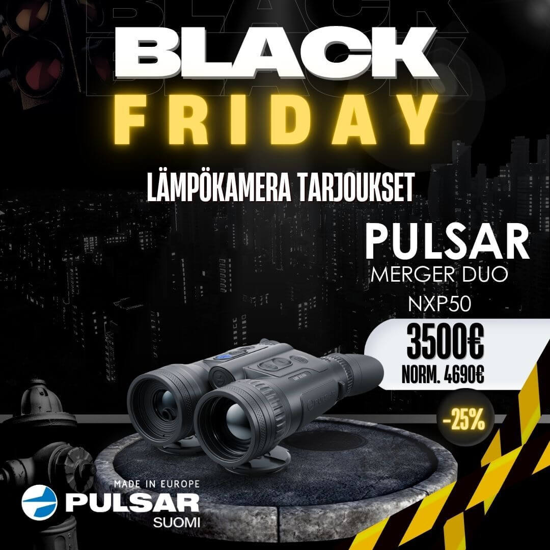 Pulsar Merger Duo NXP50:ssä yhdistyy lämpökamera ja digitaalinen valonvahvistus. Voit valita kumpaa kanavaa katsot vai katsotko lämpökuvaa ja valonvahvistusta yhtä aikaa. Pulsar Merger Duo NX50-lämpökiikarien muotoilu on tuttu perinteisistä päiväkiikareista. Ne eivät vie paljoa tilaa, ja sopivat hyvin käteen, ja käytettävyytensä lisäksi myös näyttävät hyviltä. Laitteen kuusi toimintopainiketta on sijoitettu laitteen päälle, josta niitä on helppo käyttää ja eniten käytetyt digitaaliset toiminnot ovat ulottuvillasi yhdellä painalluksella.